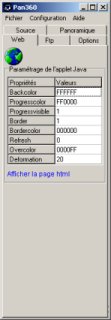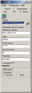 - Capture les images d'une webcam ou d'un fichier. - Cadre la partie désirée de l'image. - Converti l'image 360° en image panoramique. - Transfert le résultat par connexion Ftp. - Programme de démonstaration : Pan360.exe v1.2 - Copyright ©2000 Christophe GOI - Code d'enregistrement : Register code
