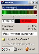 - Programme exécutable : AutoRec.exe v1.0 - Copyright ©2005-2007 Christophe GOI