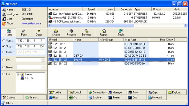 - Programme exécutable : NetScan.exe v3.0 - Copyright ©2004-2013 Christophe GOI