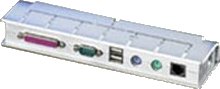 - Permet le branchement d'appareils USB, sériels (par ex. modems), parallèles (par ex. imprimantes), clavier et souris PS/2 par le port USB du PC ou du notebook